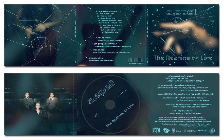 a.spell was a Swiss-South African trio with Jan Galega Brönnimann (Bass Clarinet / Contrabass Clarinet / Electronics), Nadja Stoller (Vocals / Accordion / Key-tar / Loops) and Ronan Skillen (Tabla / Percussion / Hybrid Drum Kit / Digeridoo / Udu). For their first album, I photographed locations in Bern to symbolize three “worlds” by creating unique “planets” for each musician. Each planet has its own animals and creatures which I hid in each photograph. If you look closely you can find all of them, and then you will know «where the strange creatures live».